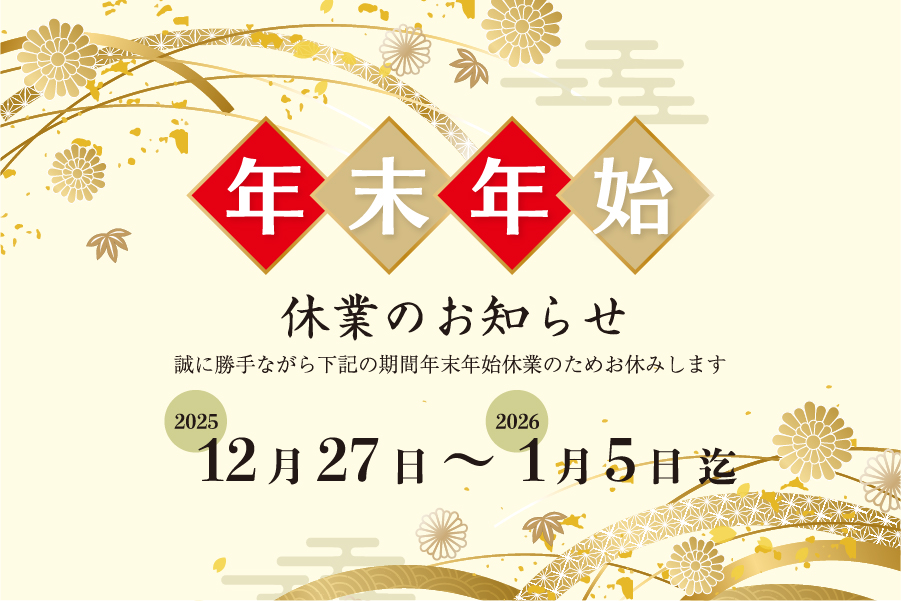 年末年始期間中につきまして下記の日程でお休みさせていただきます。詳細…